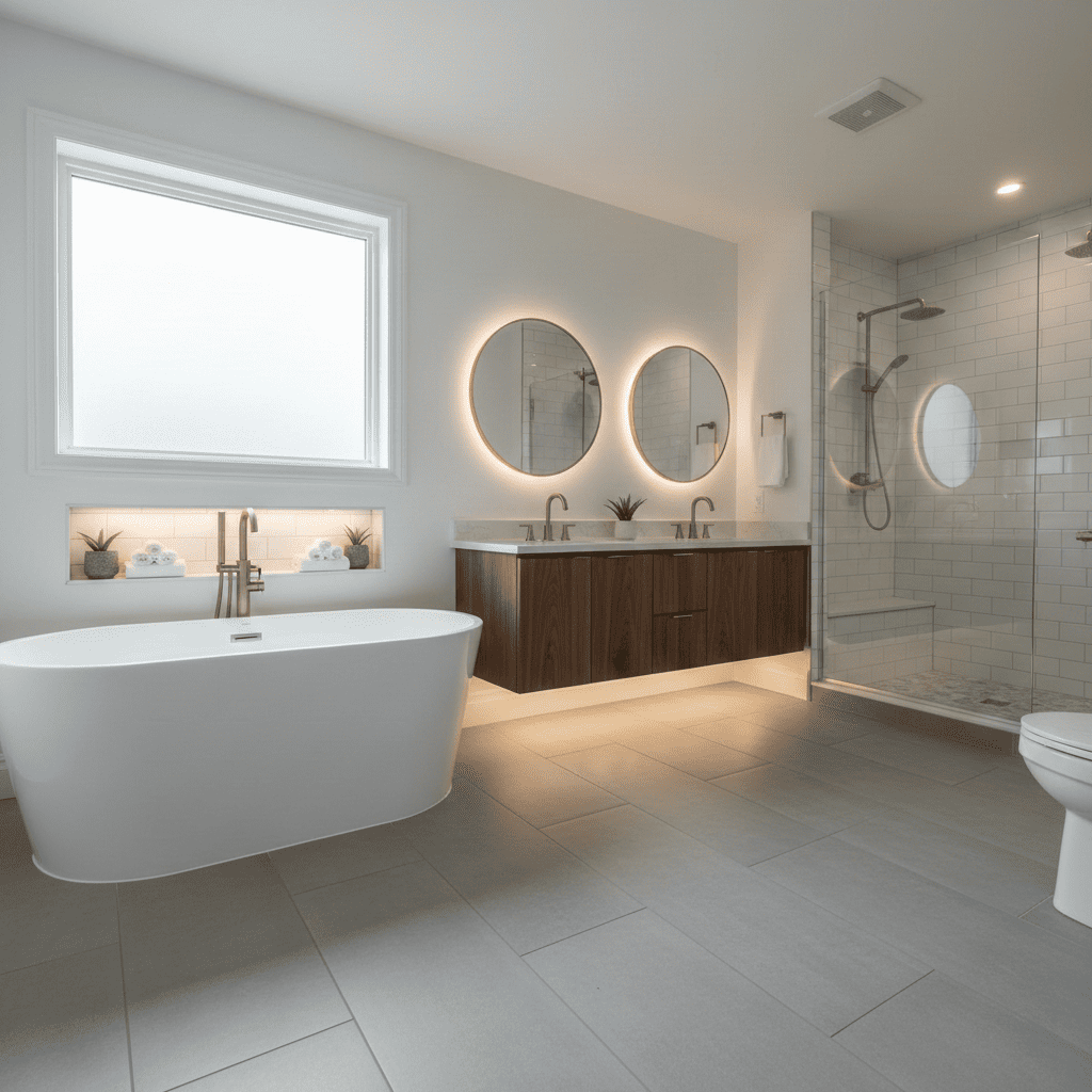 Modern tiling allows homeowners to introduce texture and personality into their bathrooms. Combined with layered lighting, these elements create a balanced environment that feels both welcoming and functional.