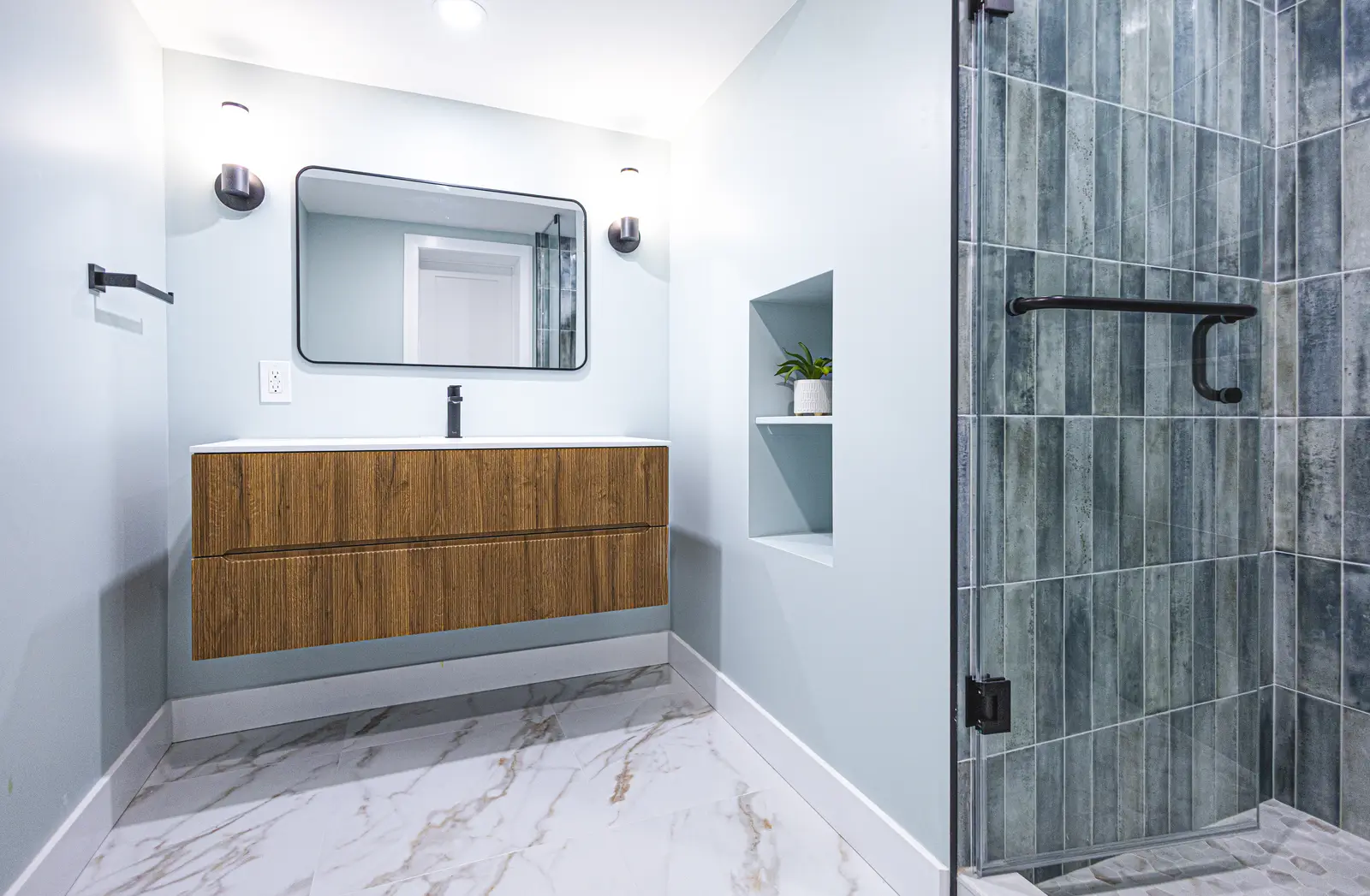 Many homeowners now prefer clean lines, floating vanities, and soft neutral tones. Lighting services in Unionville often include layered lighting — overhead fixtures, vanity lights, and accent illumination that creates depth without overwhelming the space.